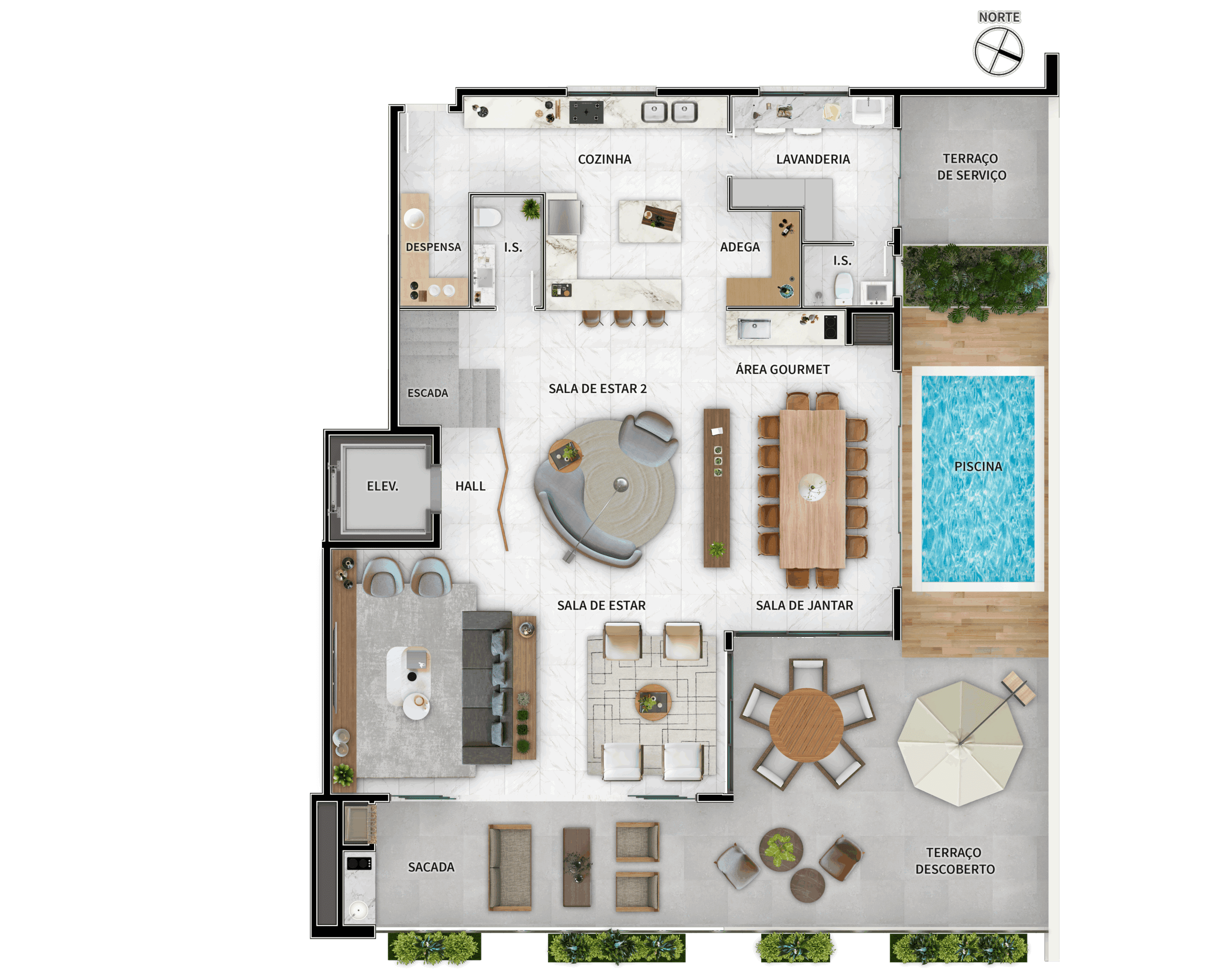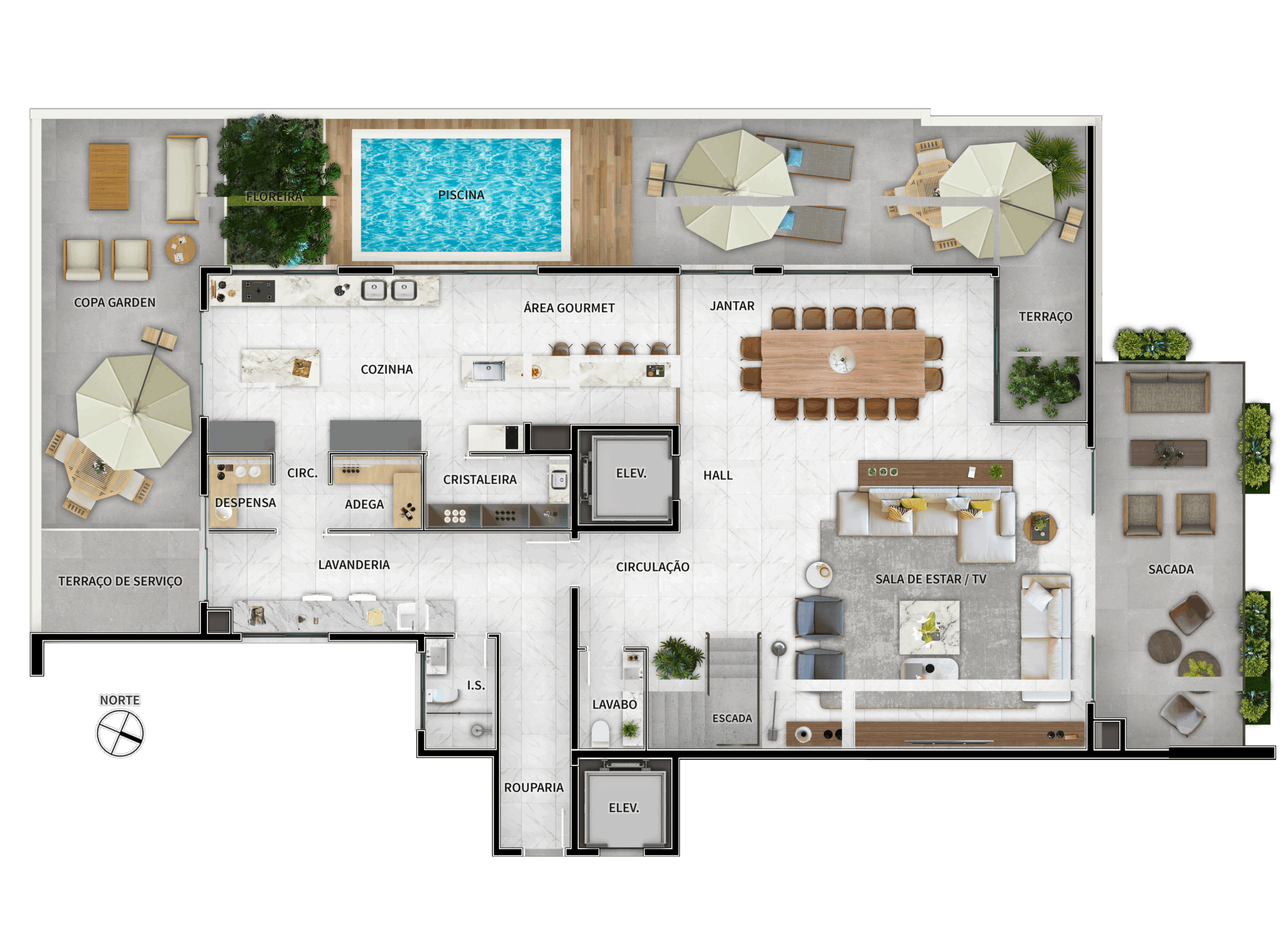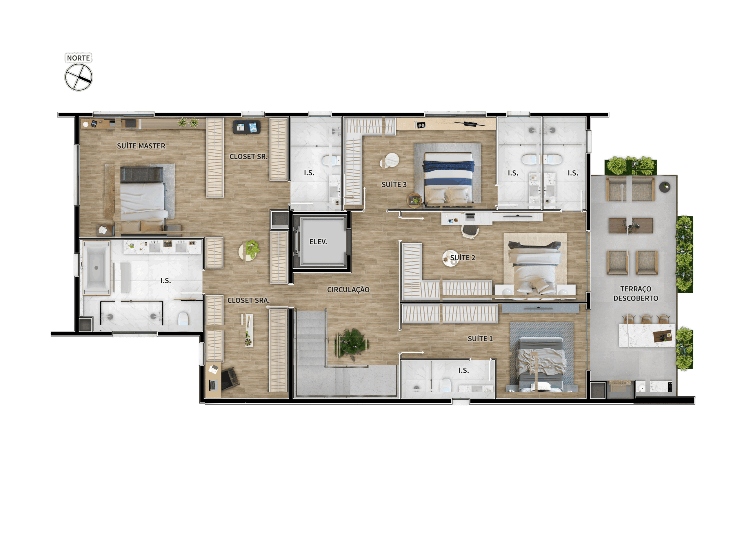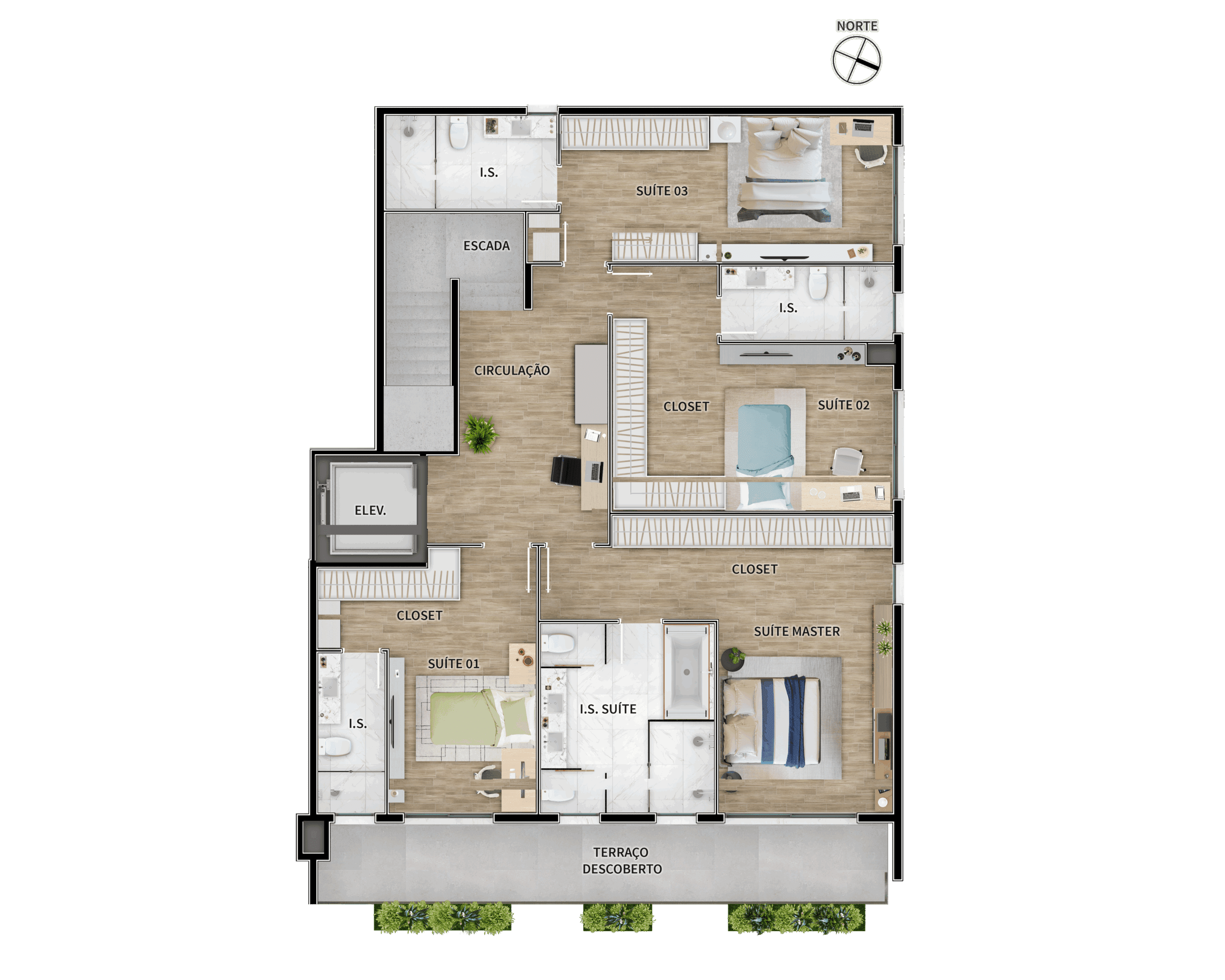 243 m² privativos com 3 suítes e 3 vagas de garagem
